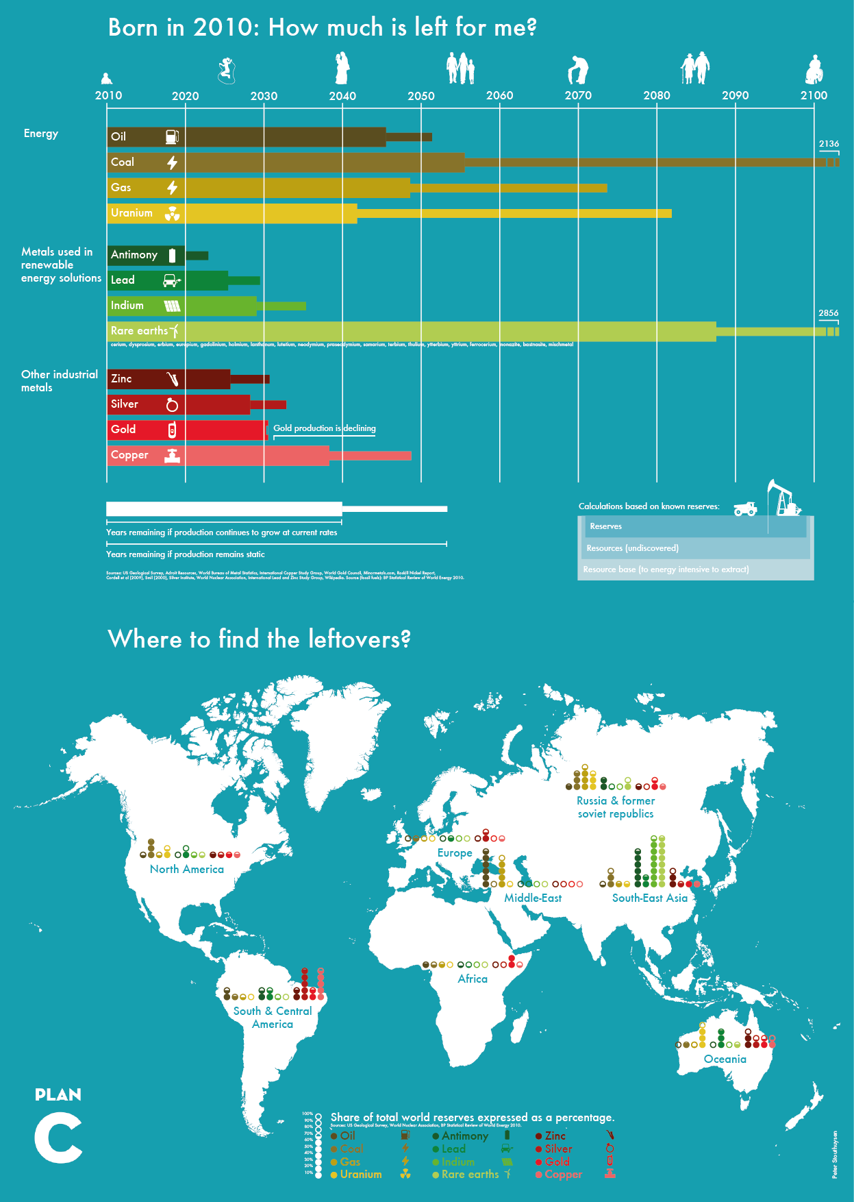This chart by Visual Capitalist shows how long the resources on Earth will suffice. Please note the image here is about half of the full chart, which can be found in Venture Capitalist's site.